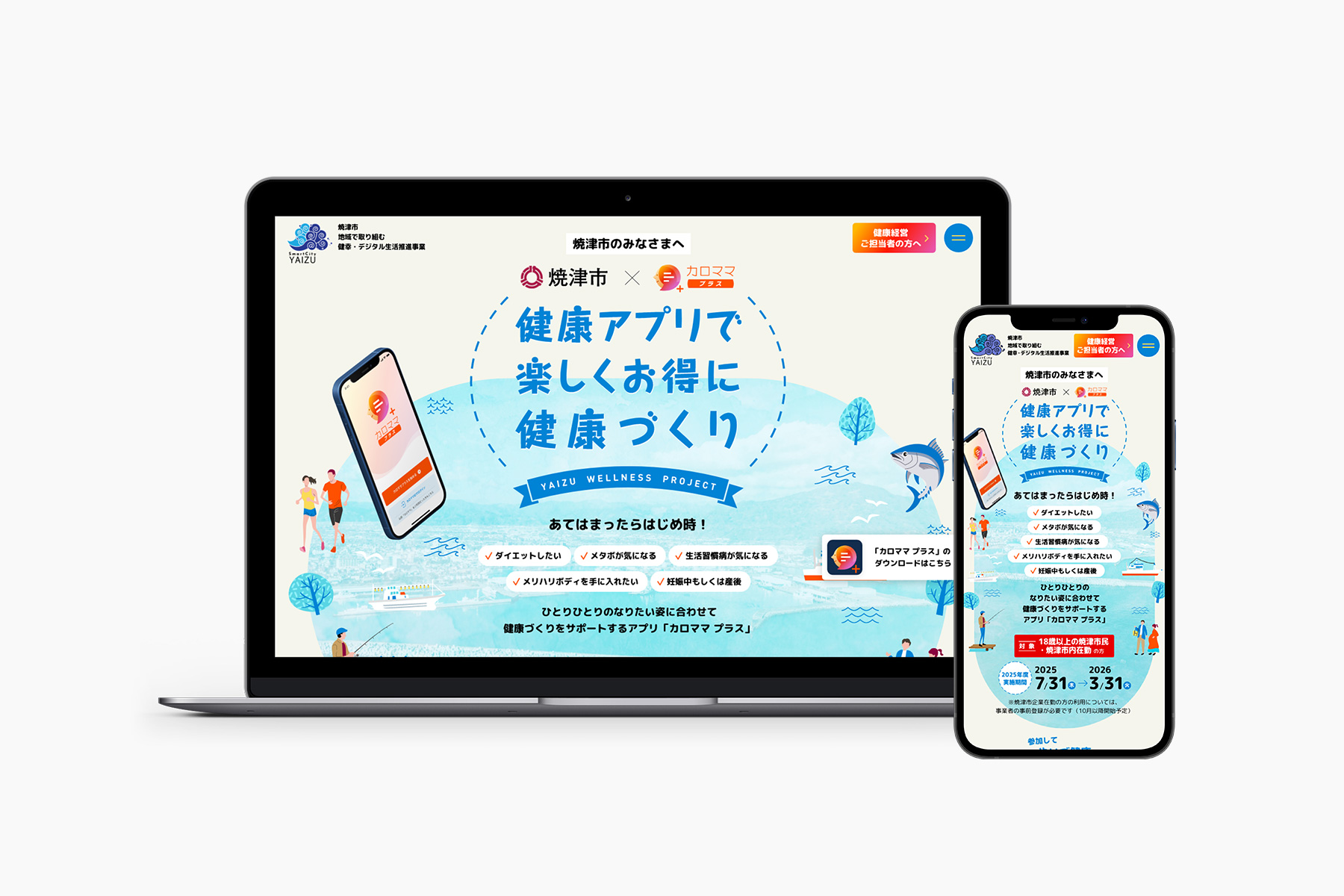 静岡県焼津市の「地域で取り組む 健幸・デジタル生活推進事業」にて活用する健幸サービスのシンボルマークをデザインいたしました。焼津市では、「からだの健康づくり」に取り組みながら、「こころの豊かさ」や「生きがい」をあわせ持つ状態を「健幸」と位置づけています。